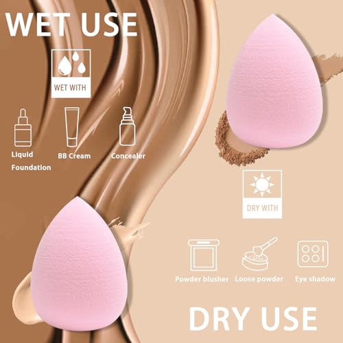 Beauty blender makeup sponge:The makeup sponge set includes 3 different shapes and 3 different size—big beauty blender,slant-cut,and mini make up sponges.Regardless of brand,these makeup sponges are mostly the same,the difference is the size of them.Our big blending sponge meets all your needs,and medium and mini beauty blender can easier to use for eyes,nose or under eyes than big beauty blenders.you can swiep all facial region by the makeup sponge set