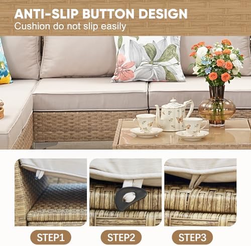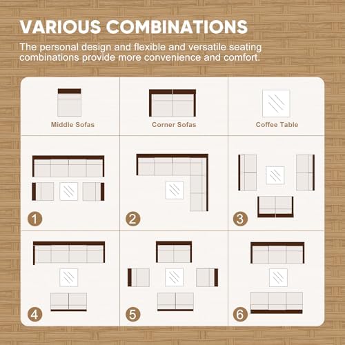 【Easy Assembly,Multi-Scenario】Each piece of the patio sectional sofa set is designed for easy assembly; All necessary hardware and detailed instructions are included; The set Elevates your backyard, lawn, garden, poolside, or leisure area with our sleek and stylish furniture set, perfect for any space.