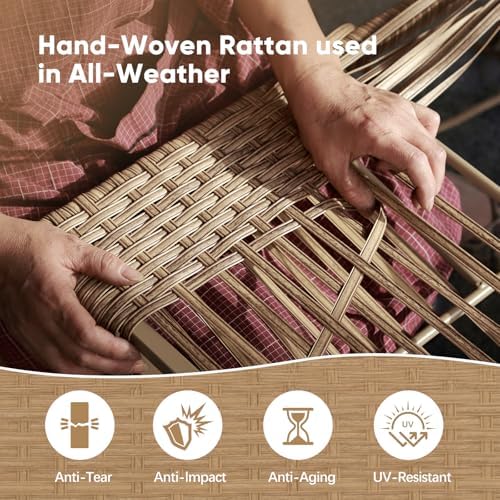 【ALL-weather&Durable Wicker】The patio furniture set is crafted with durable PE rattan that are strong enough to withstand all weather variations and won’t fade, split or incur other wear,providing sturdiness and durability.