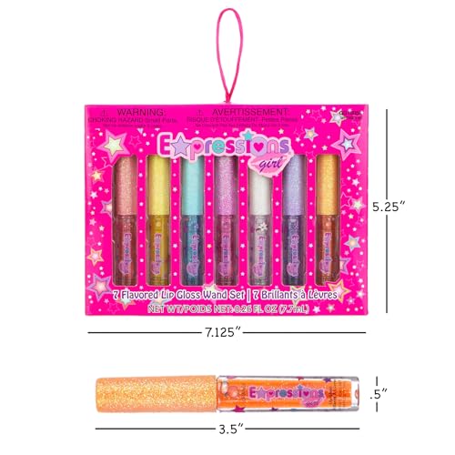 Expressions Girl’s flavored, glittery lip gloss wand set is the perfect way to introduce your little glamour-girl to the world of cosmetics. The set comes with 7 glitter-infused glosses that are packed with your favorite yummy flavors and leave lips shimmery and soft all day.