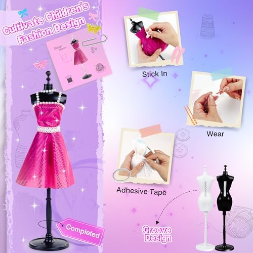 No-Sew Mode: First choose the fabric you like, mark with a water-soluble pen following the template, then cut out and add some embellishments to create a masterpiece. Groove design on the back of the mannequin, kid will more easily and safely complete their own fashion items without sewing clothes. Best Kit for beginners who love design.