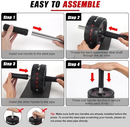 Amazingly Durable & Stable: The high-strength stainless steel shaft of the ab roller for abs workout can hold a maximum weight of 500 pounds for your safety. EVA rubber cotton handles provide nonslip and comfortable grip