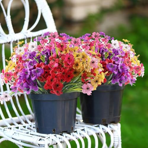 Perfect for Outdoor/Indoor – Plastic flowers are ideal for outdoor porches,walkway,terraces windox box,front yard,pots,hanging planters,gardens,landscape,windowsills,allow you have beautiful color all year around.Also suit for birthdays,weddings,memorial place or grave,they can live anywhere and have withstood heavy rain storms and winds