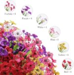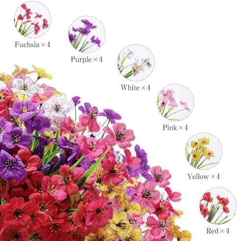 24 Bundle Super Value Set – You will get 24 Bundle artificial flowers, the mix 6 colored artificial flowers includes fuchsia, purple, white, pink, yellow, red, 4pcs each color. each bunch has 5 flexible branches and 18 flower heads. Flower head diameter: 1.38 inches, length: about 13 inches (adjustable)