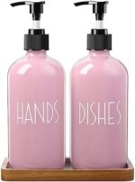 COUNTRY DECOR – Decorate your kitchen counter with this pink dish soap dispenser. This rustic-style dish soap dispenser will complement any rustic or country kitchen, adding a modern farmhouse charm to your kitchen countertop for years to come.