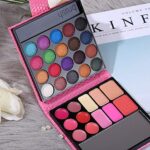 Eyeshadow Palette featuring 20 shades like pure white ,champage, hot pink, sky blue, rustic brown, red, grass green, violet, slategray, purple,orange, bright blue,bronze, navy blue, olive,plum, tan,black,etc. They also deliver slight shimmer and satin finish. They provide rich color pay off, staying power and blendability. And also deliver smooth metallic and satin finish.