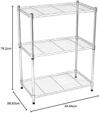 3 shelf wire rack offers handy storage space and easy access to tools and supplies