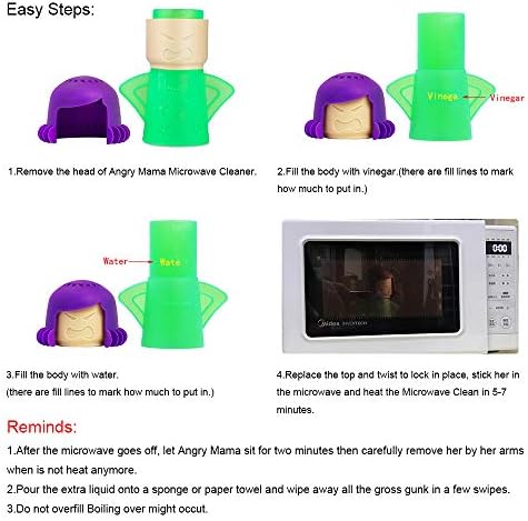 With this angry mama microwave steam cleaner, all you need to do is add vinegar and water, and let it work its magic. Simply fill the angry mama with vinegar and water, place it in the microwave, and heat it for a few minutes. The steam generated will loosen stubborn stains and eliminate odors, making cleaning a breeze.