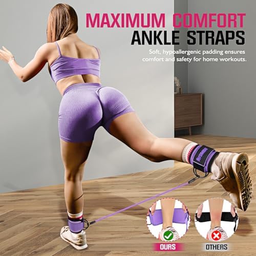 Unmatched Comfort and Safety: Our Ankle Resistance Bands are designed with your comfort and safety in mind. The ankle strap is equipped with a premium quality sponge for ultimate comfort during your workouts. The neoprene ankle pad ensures a secure and comfortable fit, while the double D-ring provides extra stability and peace of mind for your legs and glutes training