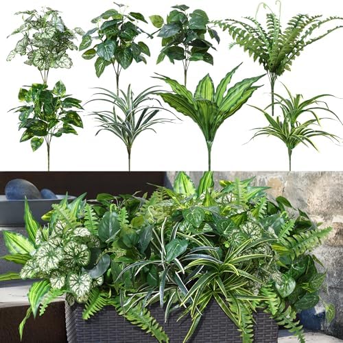 Easy to Maintain: Artificial outdoor plants are made from UV-resistant plastic material, and never fade, without having to worry about sunlight, watering, pruning, or other maintenance. These no-fuss plants stay lush and green with zero effort.