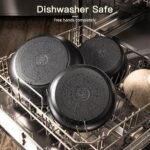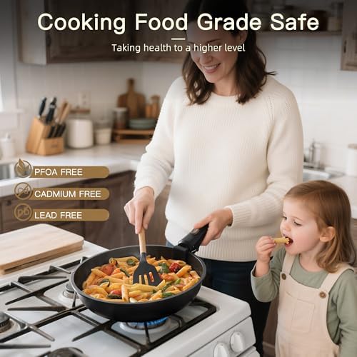 【High-Performance Nonstick Coating】 Equipped with a premium nonstick coating, our pots and pans offer exceptional durability and performance. Easy to clean and free from harmful chemicals like PFOA, it ensures a healthier cooking experience.