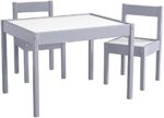 Art projects, tea parties, and snack time are all the more fun with the Baby Relax Hunter 3-PC Kiddy Table & Chair Set. Stylishly simple, this kid table and chairs set includes a kid-friendly height table and two chairs. Featuring a sturdy wood construction, your kids will love to play on this child table and chair set for years to come. To make life easier, the table top is designed with a low border that will help keep puzzle pieces, crayons, and small toys on the table and off the floor! For all parents who home school their children, we think you just found your new best friend! The Hunter is suitable for kids’ playrooms, nursery rooms, or even in the living room. This kid table set will have everyone wanting to sit at the kid’s table. Available in multiple color options, the Baby Relax Hunter is both a fun piece for your children and a functional solution for you! Bring home the Baby Relax Hunter 3-PC Kiddy Table & Chair Set (Color: Grey) and watch it transform your nursery or play area. Shipping dimensions: 27.25″L x 20″W x 3.12″H. Chair Weight Limit: 60 lb. Table Top Weight limit: 15 lb