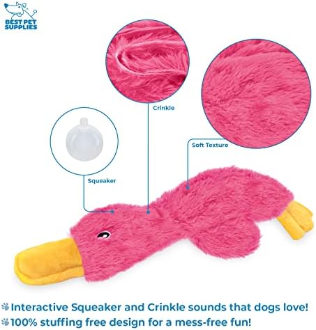 Interactive Squeaker and Crinkle Sounds – [Brand] dog crinkle toys no stuffing designs boast an audible squeaker inside the duck’s head and crinkle paper running through the body to give your pup multiple ways to have fun playing.