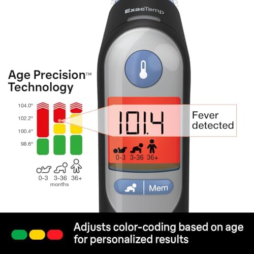 Easy to use: Featuring a pre-warmed tip and infrared technology, this baby thermometer for infants takes temperatures instantly and can be used comfortably; the ExactTemp system uses a light and beep to confirm proper positioning in the ear