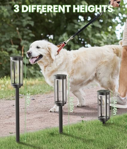 UNIQUE & RETRO DESIGN: The bright solar pathway lights outdoor feature warm white tungsten filament bulbs placed within high transparency, thicker lampshades, making BITPOTT solar yard lights brighter and more durable than others. These waterproof solar powered landscape lights can project unique light and shadow, creating a romantic and warm atmosphere for your home.