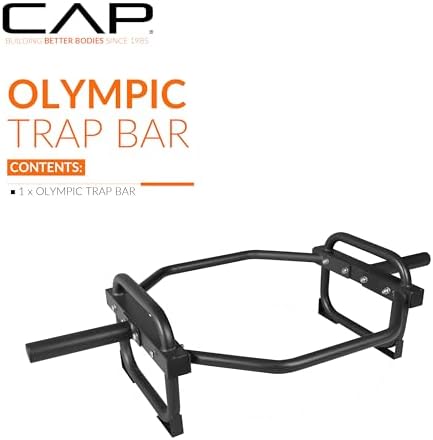 Build strength and fuel your muscle growth by engaging large muscle groups with the CAP Barbell Olympic Trap, Shrug, and Deadlift Bar. This bar features neutral placed grips for comfort and elevated sleeves for less strain on the back muscles. The incorporate feet protect floors from getting scratched and scuffed up by weight plates and help balance the bar while loading and unloading weights. The compact design of this basic trap, shrug, and deadlift bar will take up a minimal amount of space in your home gym. CAP’s Basic Trap, Hex, Shrug, Deadlift bars are a serious addition to any home gym. Designed to handle heavy weight safely and securely with coatings applied that last through the most grueling workout.