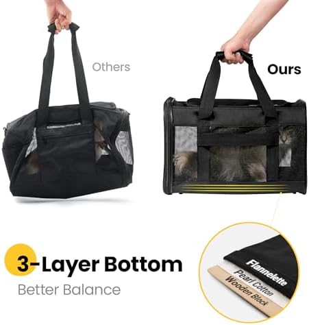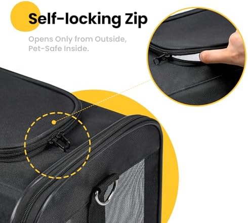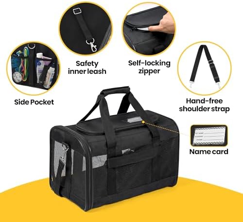 SIZES & WEIGHTS: Airline-approved, this cat carrier measures 17 x 11 x 11inches and is recommended for pets weighing less than17 Lbs.Choose the carrier based on your pet’s length and height, not just weight.If your pet is still growing, we recommend purchasing a larger size to avoid tedious exchanges.Travel in style with your furry friend using this lightweight cat carrier bag!