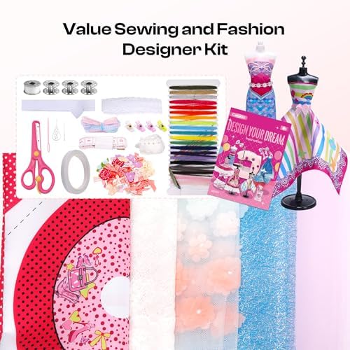 Boosts Creativity & Skills: This beginner sewing machine is carefully equipped with a rich variety of sewing materials and creative accessories, allowing kids to fully unleash their boundless imagination—freely cutting, piecing together and decorating to design unique clothes exclusively for dolls. Meanwhile, they can also develop hand-eye coordination and artistic expression skills through matching and expressing colors and styles