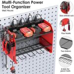 Wall mount power tools organizer come with 4 slots, 4 hooks and drill bit rack, built-in power strip, double layer structure can keep rechargeable tools organized in the work area and save your bench space. The tools in the picture are for demonstration purposes only and are not included.