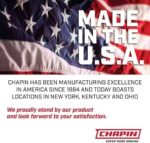 MADE IN THE USA WITH GLOBAL MATERIALS: designed and produced in the USA with US-based customer service and technical support, located at Chapin’s home base in Batavia, NY; backed by Chapin’s 1-year limited warranty
