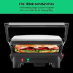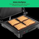 ADJUSTABLE FOR ANY OCCASION: Floating hinge adjusts to accommodate any size sandwich – thick or thin. The closed cooking surface is ideal for four sandwiches or two large paninis. Great for a quick meal, summer party or a family event. This unit is perfect for making breakfast, lunch, dinner and more!