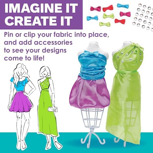 FASHION DESIGN FOR GIRLS: This fashion designer kit lets girls create and sew dresses, skirts, and accessories. With vibrant fabrics, ribbons, and trims, youβll have endless possibilities to express your passion for fashion. A perfect fit for dress design craft making kit, this kit provides hours of fun and creativity, ideal for girls fashion