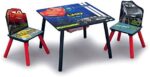 Your child will zoom towards this Disney/Pixar Cars Table and Chair Set with Storage from Delta Children. Colorful graphics of the legendary Lightning McQueen and newcomer Jackson Storm bring full-throttle fun while built-in storage in the center makes it a multi-purpose play table ideal for coloring, homework and snack time. This Table and Chair Set with Storage coordinates with other items in the Disney/Pixar Cars Collection from Delta Children.