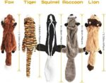 🎁 Good Quality: Made of non-toxic premium quality plush fabric, incredibly safe, soft and durable. Floppy lightweight bodies, length of fox and lion is 17.72inch, squirrel and raccoon is 21.26inch, tiger is 19.69inch, easy for small, medium and large dogs to carry, toss, and roll around with. Intensive fabric and better stitching make these squeeky toys more durable for dogs