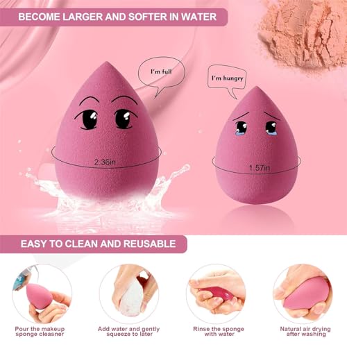 WET & DRY USE: This makeup sponge is easy to use and easy to clean, beauty sponge is available for wet and dry use. After being completely wetted, the sponge becomes larger, elastic, and not easily deformed. Makeup sponges can be used for concealer, foundation, BB cream, sunscreen, or directly used for eyeshadow, blush, powder, and other cosmetic products. Makeup Sponge set