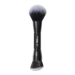 Dual-ended makeup brush offers versatility and portability when applying cream and powder makeup products