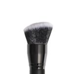 Fluffy end diffuses powders, while angled end blends out cream formulas