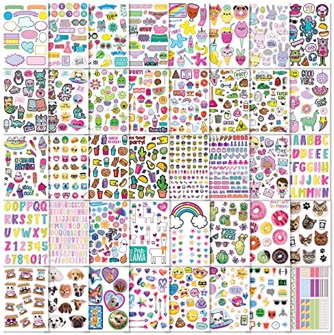1000+ Fun Assorted Stickers – The Fashion Angels sticker collection includes 1000+ high quality stickers with multiple themes. Kids and teens will enjoy cute trendy sticker designs like colorful letters, monsters, donuts, ice cream, taco, rainbows, tropical plants, space objects, puppies, kittens, emojis, unicorns and more.