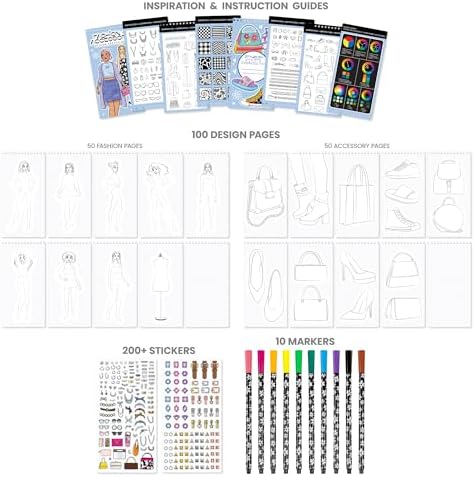 WHAT’S INCLUDED: This set includes 100 sketch sheets, 2 sticker sheets and 10 markers. Instructions and inspiration guide also included