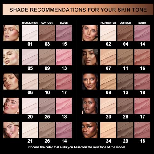 FOCALLURE 3 Pcs Contour Makeup Kit: This three-piece kit with shades that blush, bronze, and glow makes getting your fresh-faced,glow-on super quick and easy. Keep your skin looking effortlessly bronzed, luminous, and fresh-faced—all for on the go.