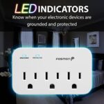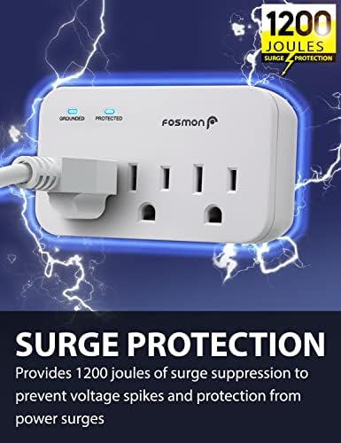 [1200J Reliable Surge Protection] This three way plug adapter incorporates 1200J of surge protection for any electronic outlet, keeping them safe from accidental damage, power surges or ground faults.