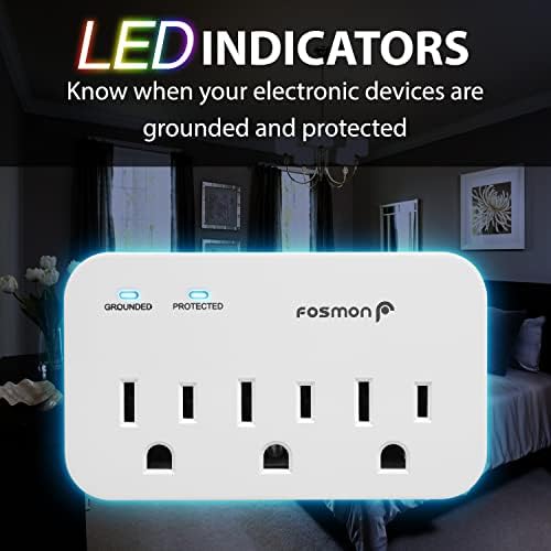 [Conforms To UL498A & UL1449] This Fosmon 1 to 3 outlet multiplug adapter conforms to UL498A & UL1449 safety standards. The 3-prong grounded plug carries a total capacity of 1875W 125V 15A with ground & protected LED indicators.