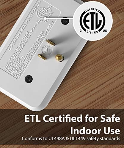 Our wall outlet incorporates 1200J of surge protection, making sure any electronic devices you plug in are safe from power surges and ground faults. Additionally, it is ETL listed and conforms to UL498A & UL1449 safety standards.