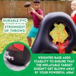 STURDY CONSTRUCTION: Made of durable PVC to stand up to the strongest of throws and kicks! The water-filled base adds additional stability so when the target is knocked down it pops right back up!