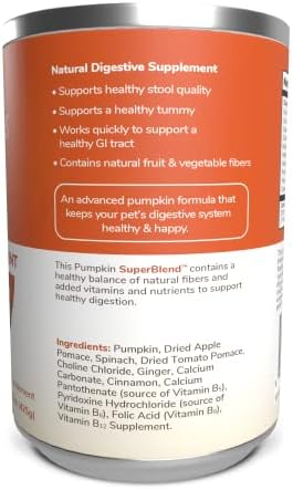 SUPPORTS DOG DIGESTIVE SUPPORT & REGULARITY: Made with natural pumpkin for dogs, this supplement delivers fiber for dogs & helps maintain healthy digestion, supports dog gut health, and provides gentle constipation relief for dogs