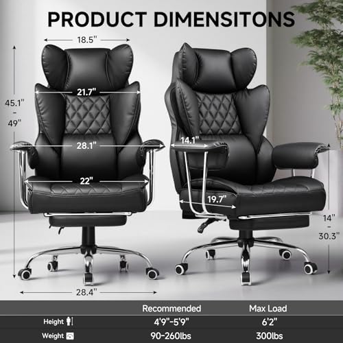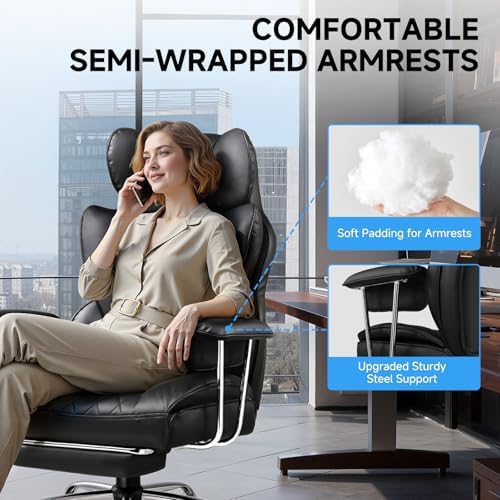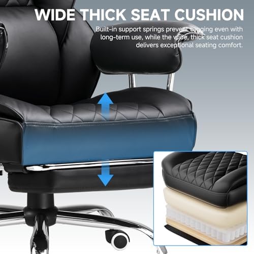 【Sofa-like Seat】 The executive chair features a pocket spring lumbar support for elasticity and heat dissipation during prolonged sitting. The widened seat, free of restricting side wings, along with an adjustable footrest, allows comfortable seating in any position. It’s as casual and free as sitting on your own sofa