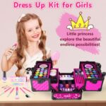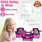 【Material Safety Makeup Toys】: kids makeup kit is made of high-quality, sturdy and renewable material that meet the standards of international children’s toys(CPSIA, CPC, ASTM certificates) for safety, and have been tested on body, there may be a slight harmless fragrance when the makeup box is just opened, but it’s can be used with confidence. Easy to wash off with soap and water, won’t leave stains on skin, clothes or furniture. Friendly for kids to makeup themselves.