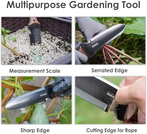 Wonderfully Versatile: Hori Hori garden knife for every job in the garden, use it for digging, transplanting, sawing, cutting, removing, dividing, and even measuring soil depth for planting.