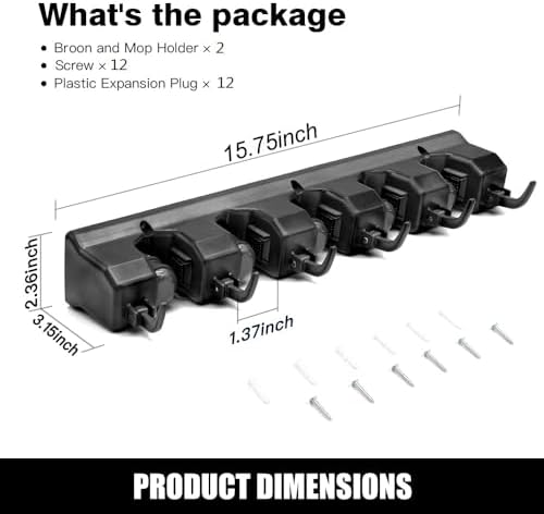 Spring Loaded: Special spring clips design with rolling rubber ball that make sure the broom and mop will not fall out,including wet mop, dirty rakes, stick vacuum and other heavy stuff