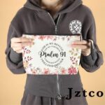 Material: Durable and Soft Polyester material. Zippered Makeup Bag with quote and beautiful print on the surface.