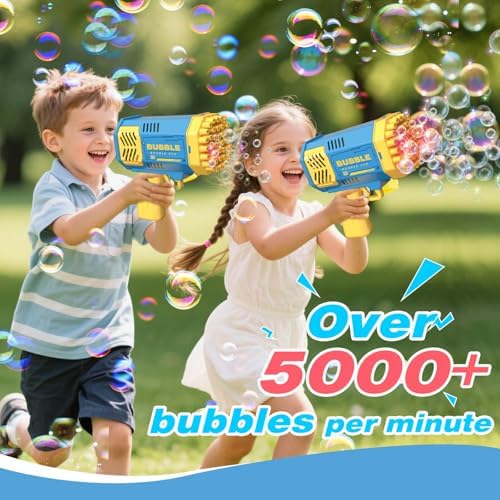 A FUN GIFT FOR ALL AGES: Each bubble machine boy toys features 40 holes and lights to create a mesmerizing bubble show. Produces over 5000 bubbles per minute, perfect for outdoor and indoor parties