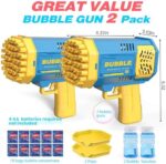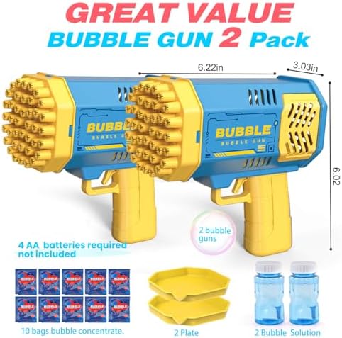 BUBBLE MACHINE 2-PIECE SET: This bubble machine includes 2 pieces of bubble wands with extra 2 refills, and 10 bags of bubble concentrate. And 2 colors of bubble blower are provided to match any color