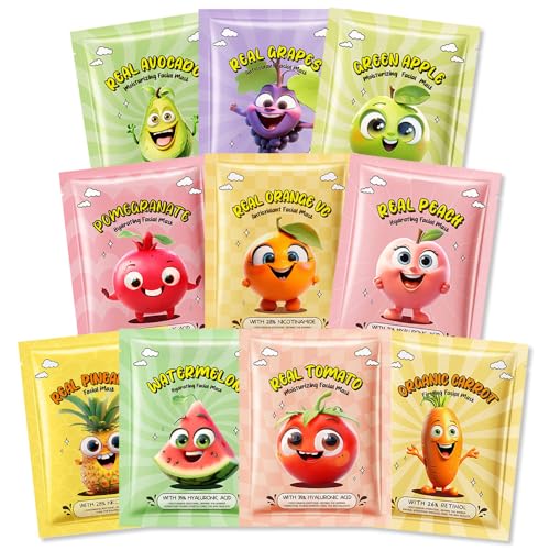 Kaely 10 Pack Fruit Face Masks for Kids, Kids Face…