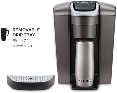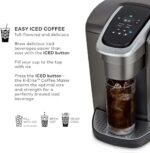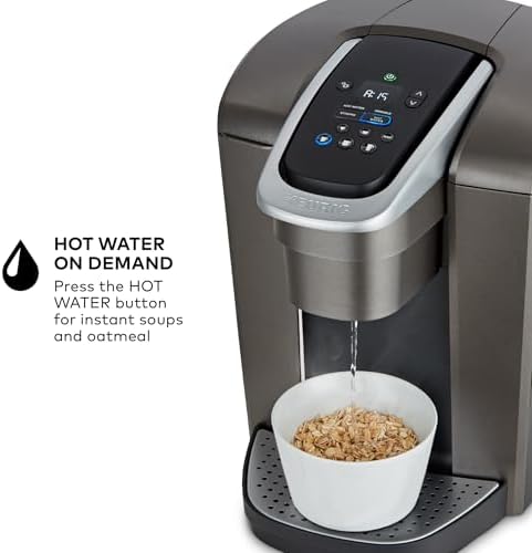 The Keurig K-Elite single serve brewer blends a premium Brushed Slate finish and programmable features to deliver both modern design and the ultimate in beverage customization. With a striking brushed finish and metal details, it’s a stylish addition to any kitchen. The Keurig K-Elite single serve coffee maker features Strong Brew for when you want to brew a bolder cup of coffee, and an Iced button to brew hot over ice for a refreshing, full-flavored iced coffee. It features five brew sizes, so you can brew your favorite coffee, tea, hot cocoa, or iced beverage at the touch of a button. Choose from hundreds of delicious varieties of K-Cup pods, or brew your own ground coffee using the Universal My K-Cup Reusable Coffee Filter (sold separately). The K-Elite brewer offers programmable features like auto on and temperature control, as well as providing hot water on demand for instant soups and oatmeal, and the large 75oz removable water reservoir lets you brew 8 cups between refills.