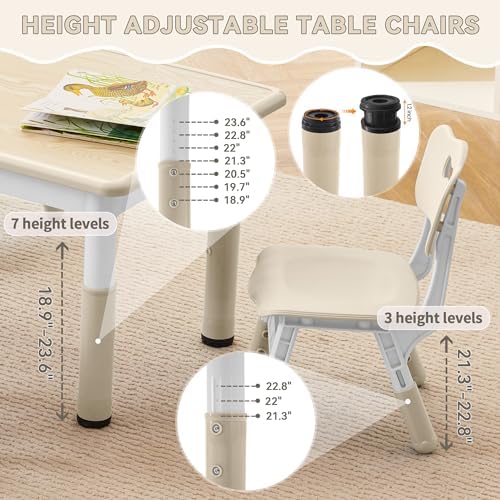 【Sturdy and Safe Material】:This activity table and chairs set is made of HDPE plastic, which is durable, non-wobble and not easy to be deformed for long term use.