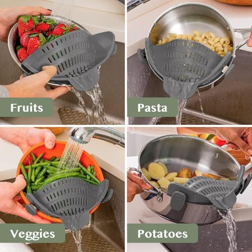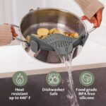 Heat-Resistant Silicone: Withstands temps up to 400°F (230°C); this durable clip on strainer grips securely when draining hot foods; a smart kitchen find that helps prevent spills and mess